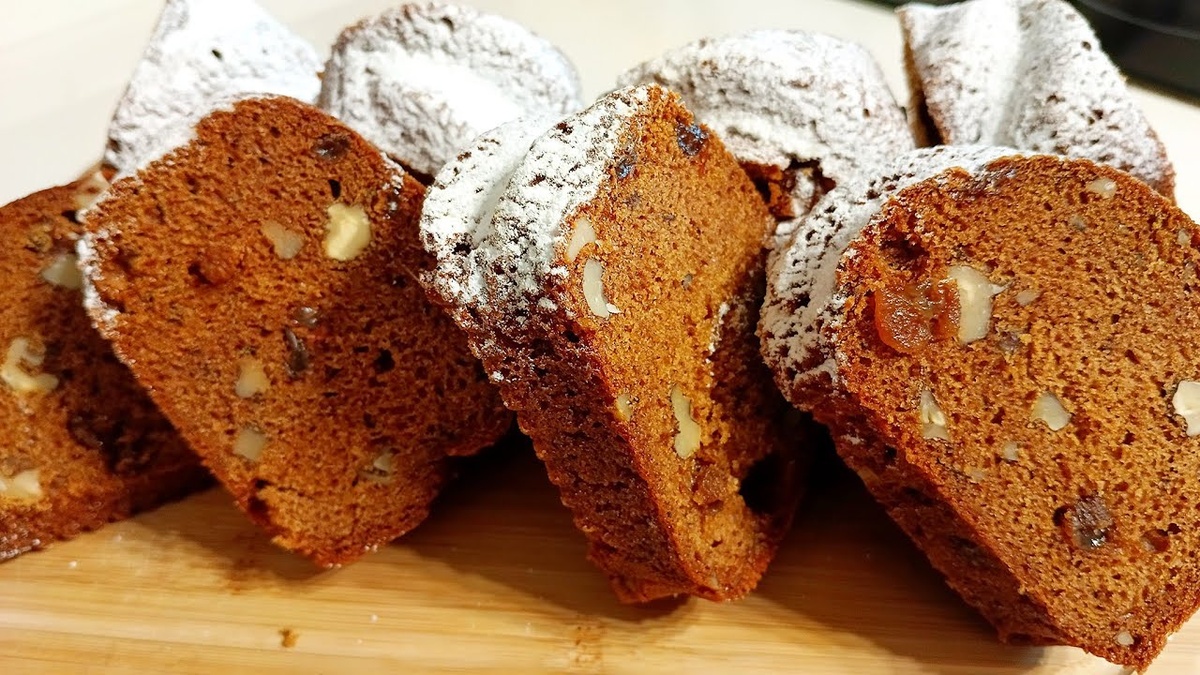 Общий выход готового изделия 1.2 кг. Пищевая ценность продукта на 100 грамм: Корень имбиря натираю на мелкой тёрке. Если у вас сушёный имбирь (специя) его количество составит 5 г. Грецкие орехи рублю ножом. Изюм промыл и обсушил на полотенце. В яйца всыпаю: сахар, соль и ванилин. Вымешиваю на высоких оборотах миксера. В сотейник с мёдом установленный на плите всыпаю соду и помешивая довожу мёд до янтарного цвета. Как только мёд стал янтарного цвета, выключаю плиту, снимаю сотейник с огня и добавляю холодное сливочное масло. Перемешиваю, чтобы масло полностью растворилось в мёде. Медовую основу вливаю в яйца. Перемешиваю миксером. Добавляю: муку, корицу, молотый чёрный перец. Перемешиваю. Тесто после вымешивания. Добавляю: орехи, изюм, имбирь и недолго перемешиваю. Тесто готово. Выкладываю тесто в форму для выпекания. Вы можете воспользоваться круглой формой 22-23 см., выстеленной пекарской бумагой. Форму с тестом убираю в заранее разогретую до 170С духовку на 60 мин. Перед подачей обсы
