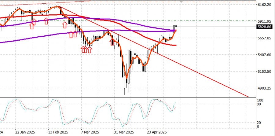 https://basechop.ru/wordpress/?p=42409 S&P500 Обзор 13.05 Рынок США: Прошли наверх важные линии сопротивления. ,Большой рост. Главные индексы США в понедельник : Доу + 2.8% NASDAQ + 4.4 % S&P500 + 3.3% S&P500 5844 диапазон 5400 – 6200 Фондовый рынок закрылся резким ростом по всем направлениям. Индекс Dow Jones Industrial Average торговался более чем на 1100 пунктов выше, чем на закрытии пятницы. Индекс S&P 500 подскочил на 3,3%, а Nasdaq Composite закрылся на 4,4%. Участники рынка были в восторге от заметного смягчения торговой войны с Китаем. США и Китай договорились о 90-дневном снижении тарифов, вступающем в силу в среду, при этом США снижают тарифы для Китая со 145% до 30%, а Китай снижает тарифы для США со 125% до 10%. Хорошей новостью для рынка является то, что сокращения оказались больше, чем ожидалось. Менее хорошей новостью для рынка является то, что сокращения истекают через 90 дней, если обе стороны не смогут достичь более постоянного торгового соглашения. Рынок