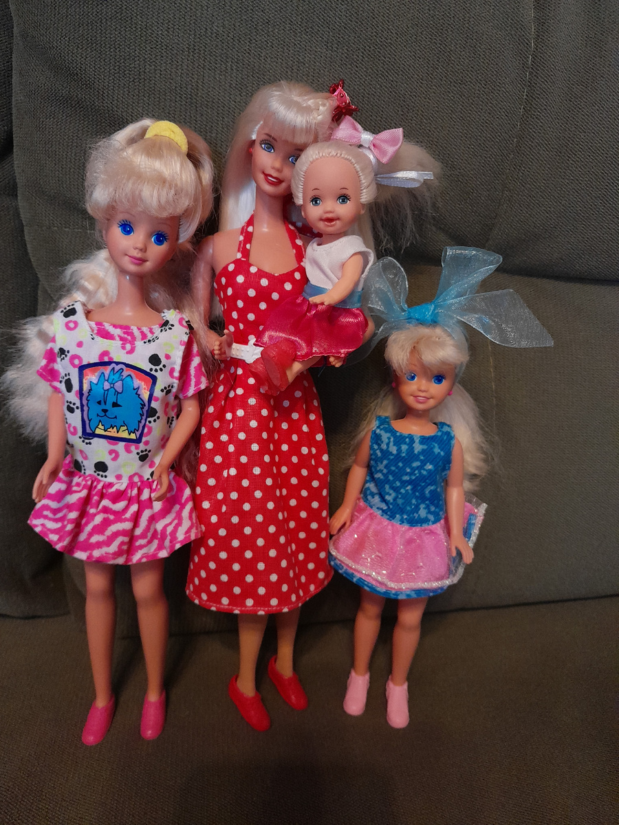 Моя первая Барби, купленная во взрослом возрасте, приехала 10 августа 2023г. Именно её в моей коллекции зовут Барбара Миллисент Робертс💖💖💖. Весной следующего года я поселила младших сестер: Скиппер, Стейси и Келли: Есть у меня и малышка Крисси, по легенде самая младшая сестричка Барби, но в моем кукольном мире она дочка Эвелин, поэтому будет в другом разделе переписи) а еще есть Райли на молде Teen Skipper, она как раз будет в разделе с Крисси, так как сестра Бена. Кто разобрался в последнем предложении, тот молодец👍🤭 Позже моя Барби встретила своего идеального мужчину, им оказался Кевин. У Кевина есть братишка Томми. И у счастливой семьи появилась дочурка Нелли) и все ребятишки ровесники, вот так у нас все просто😊 Потом к нам приехала кузина Барби, Джаззи: Для переписи 8 кукол: Итого 52+8=60✅️ Пока малышки и Джаззи со Скиппер наряжались в обновки, я сфотографировала свои "амбары и сусеки" в рамках челленджа : Это главная коробка-гардероб: Ещё 4 коробки из-под бмр-ов, тематичес