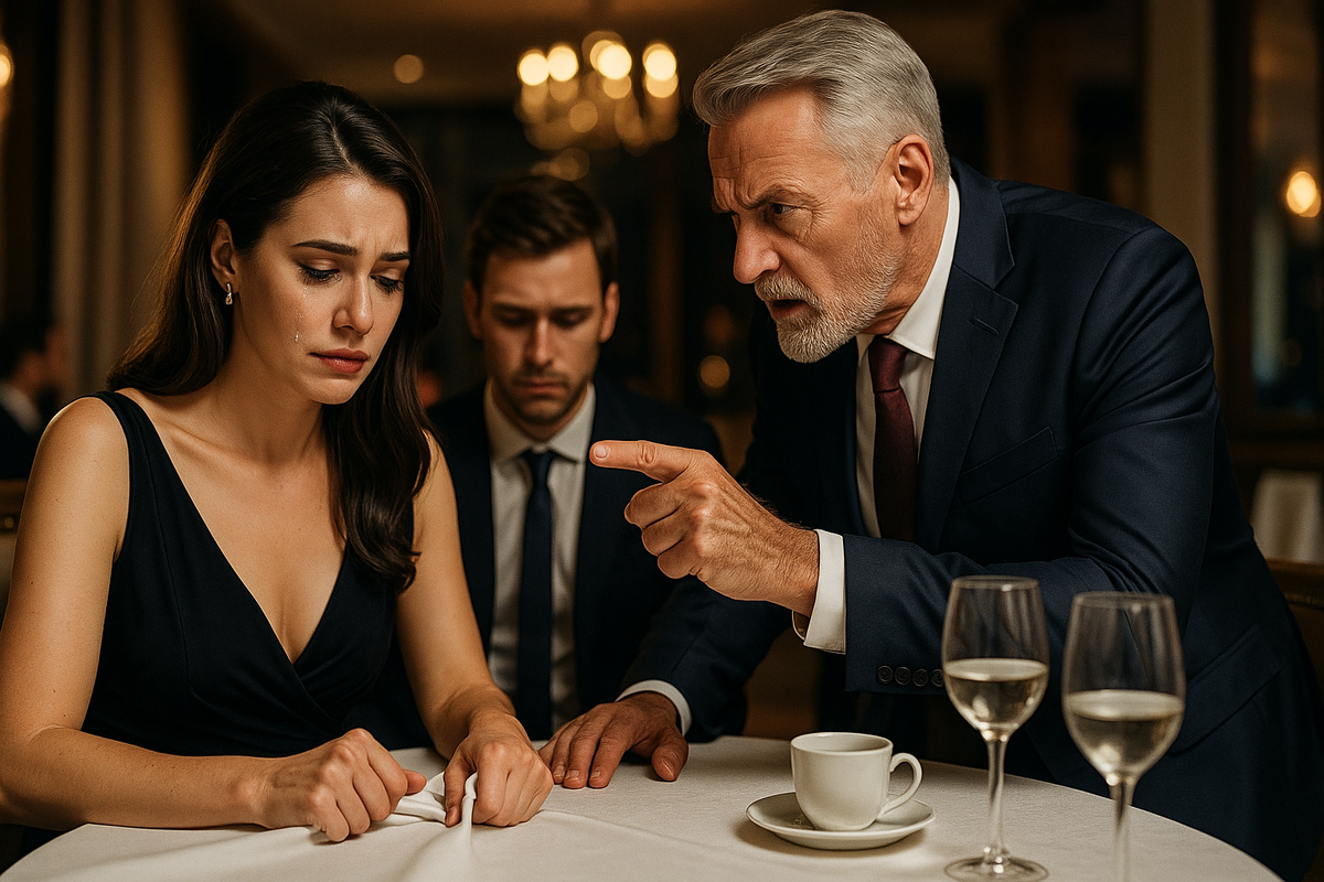 Официант застыл с подносом, на котором стояло шампанское для тоста. В проёме кухни показались любопытные лица персонала. Мои щёки горели, руки дрожали так, что я крепко вцепилась в скатерть, чтобы это не было заметно.