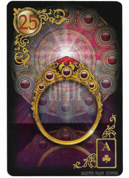 Карта КОЛЬЦА - символ брака, в позиции прошлого - совершившегося, в позиции будущего - предстоящего. Если КОЛЬЦО выпало рядом с личной картой - это хорошее предзнаменование.