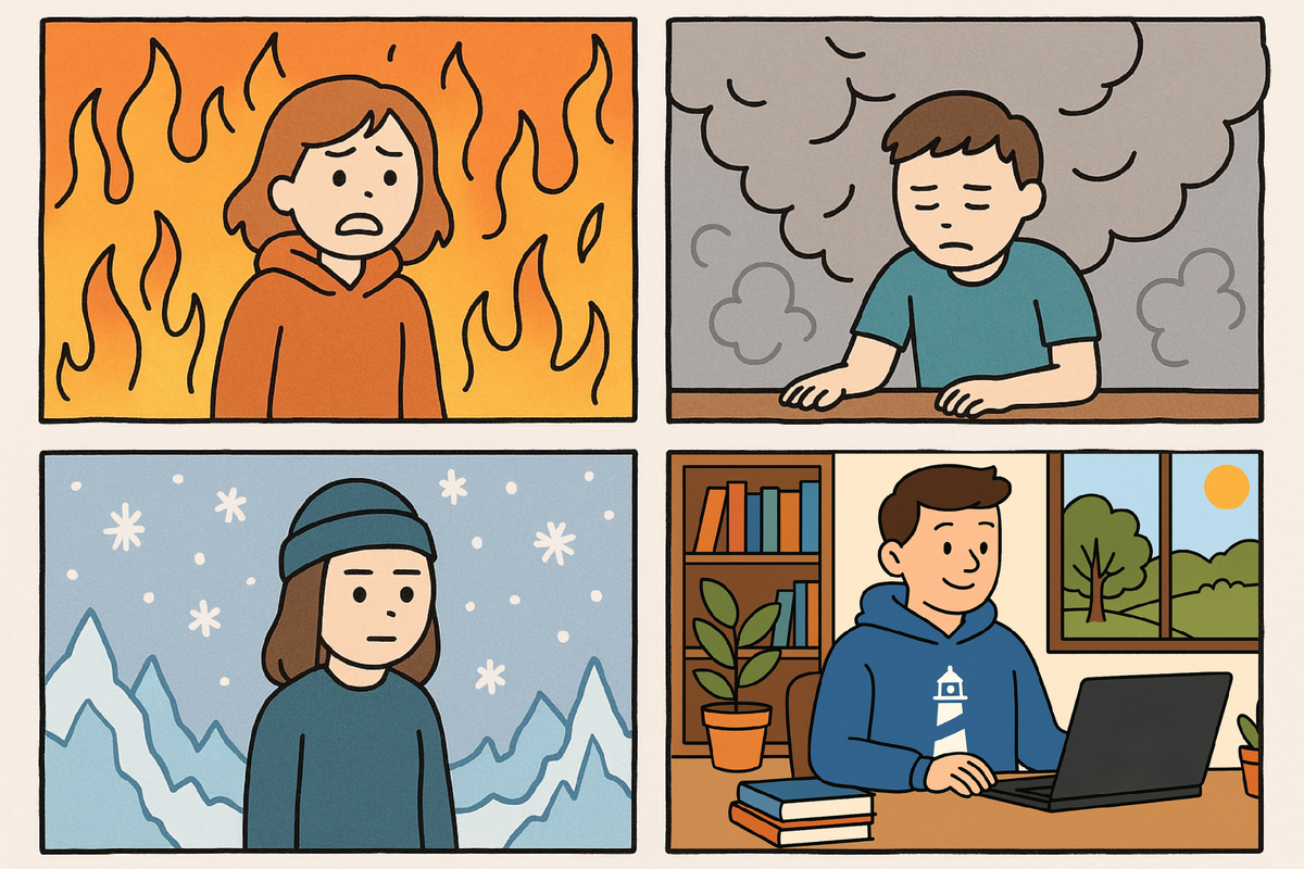 В эти дни у нас всех включаются три режима: одни судорожно пытаются выучить весь учебник за ночь (и сгорают), другие впадают в апатию (и выгорают), третьи вообще делают вид, что всё хорошо (и замерзают).