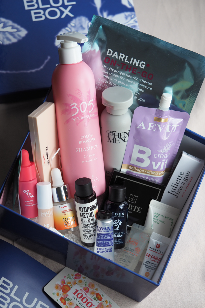 Знаю, вы любите классные коллаборации, также как я! Поэтому спешу показать вам совместный выпуск Glambox и Blueprint - Bluebox. Вот это наполнение, вот это красота! Здесь и тональный крем Make Up For Ever HD skin hydra glow, парфюм Juliette has a gun, BB крем Erborian в оттенке Dore + саше праймера для лица PP, полноразмерная палетка для лица Pupa Milano, крем для рук L'occitane Лаванда - ТОП! Также можно найти классные средства: полноразмерный шампунь 305 для окрашенных волос, масло для душа Phenomenon, палетка теней для глаз L'arte, крем для лица лифтинг Aevit, сыворотка для сияния кожи лица GoTaPa, мицеллярный гель для умывания Avene, сыворотка для лица с витамином С Icon skin, гель для душа с коллагеном Eden, шампунь Кудрявый метод, крем для лица с термальной водой + саше сыворотки Eau Thermale Uriage, увлажняющий крем для лица InnisFree, гидрогелевая маска для лица Darling* и саше увлажняющего крем для комби кожи Apivita Bee Clear. Как вам состав? Приобрели бы себе такую коробочку