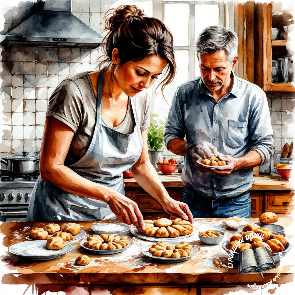 Воскресное утро в квартире Алёны и Сергея наполнилось ароматом свежего теста и яблочной начинки. Солнечные лучи пробивались сквозь тюлевые занавески, играя на гладкой поверхности кухонного стола, усыпанного мукой. Алёна, с волосами, собранными в небрежный пучок, напевала что-то под нос, ловко управляясь с раскаткой теста. Рядом на столе уже красовалось блюдо с готовыми пирожками, каждый из которых был идеально защипан и смазан яичным желтком.