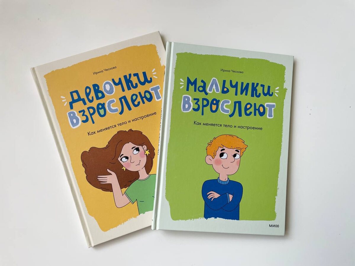 Книги Ирины Чесновой "Девочки взрослеют" и "Мальчики взрослеют" (издательство МИФ) хорошо подойдут, чтобы говорить с детьми о взрослении открыто и без неловкости.