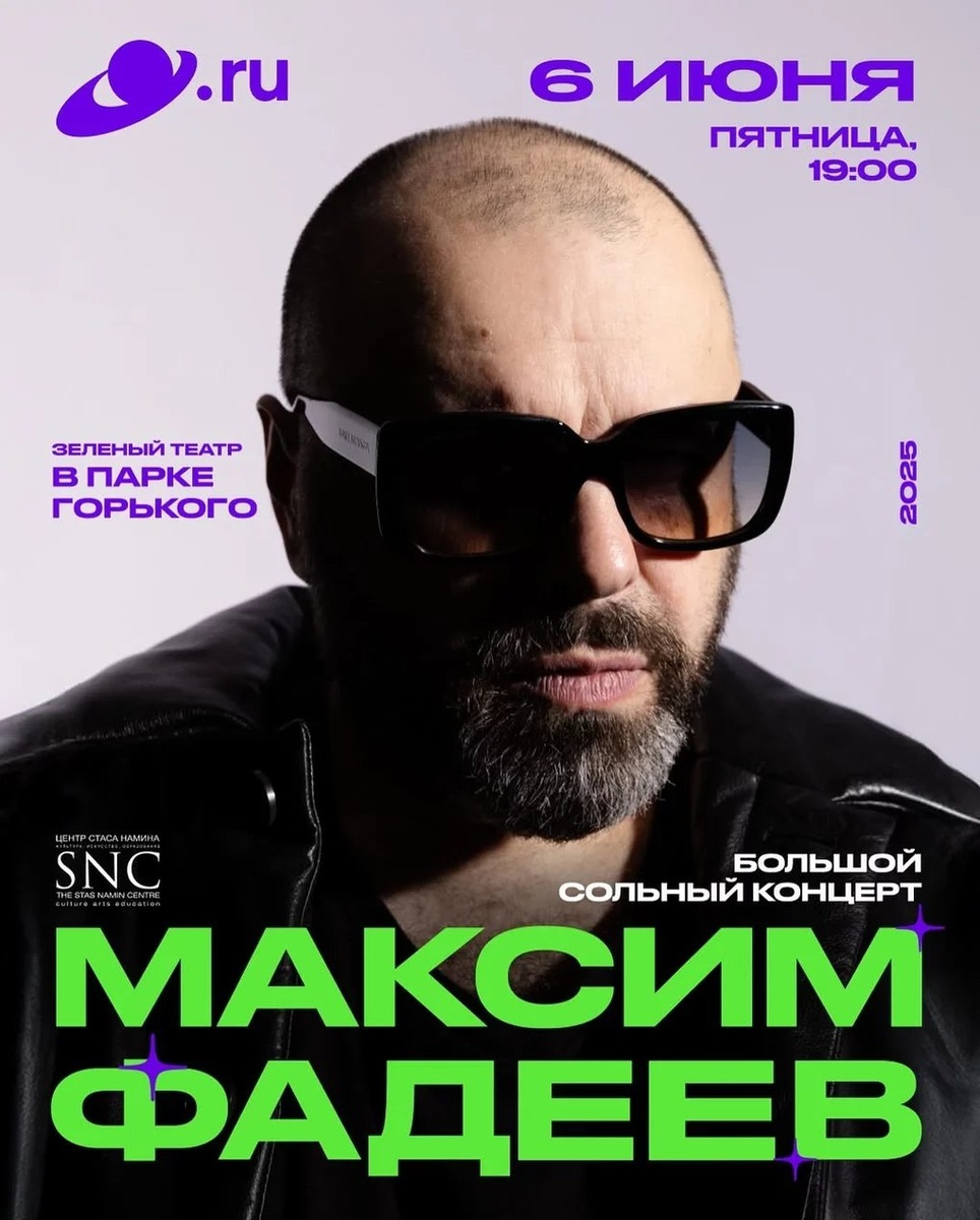 Максим Фадеев проведет первый за шесть лет концерт в Москве. Он состоится 6 июня в Зеленом театре парка Горького. Вместе с артистом на сцену выйдут 12 музыкантов. Зрители услышат «Танцы на стеклах», «Сестричка», «Скажите детям», «Беги по небу» и другие песни. Концерт организует краудфандинговая система Planeta.ru. https://bg.ru/bg/weekend/weekend-news/27212-fadeev-moscow