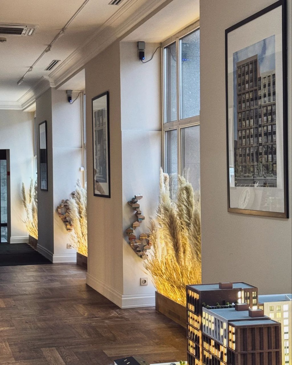 Полюбуйтесь, как наши сухоцветы оживили интерьер Отдела продаж ЖК "Знатный", ГК Вертикаль, Московский проспект 140, Санкт-Петербург