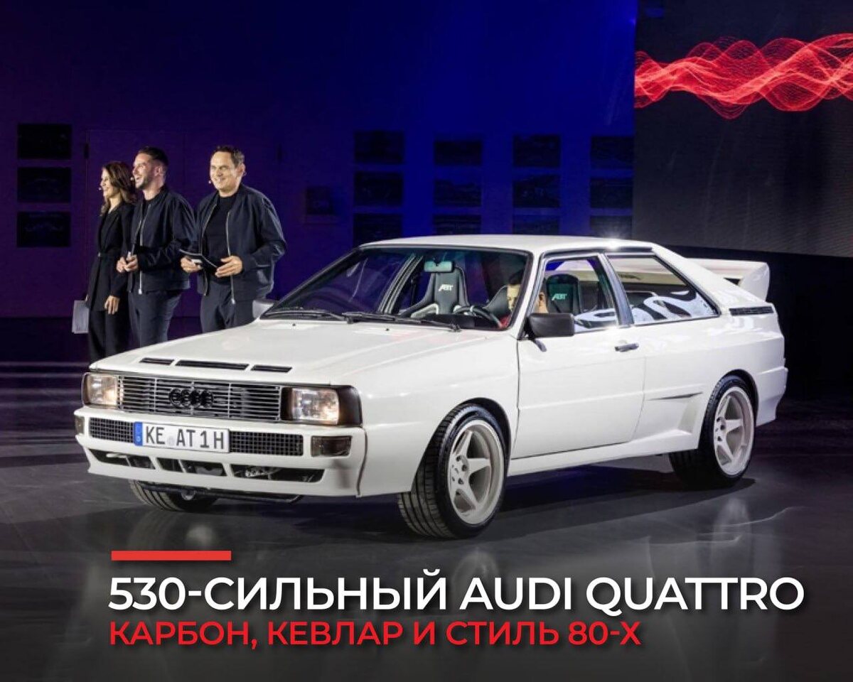 🔥КАРБОН, КЕВЛАР И СТИЛЬ 80-Х 🤓Фирма ABT Sportsline, известная своими тюнинг-проектами для моделей Audi, решила попробовать себя в рестомоддинге (создание визуально аутентичного автомобиля, адаптированного к использованию в современных условиях). В своем дебютном проекте компания сотрудничала с мастерской LCE Performance, которая уже давно занимается созданием рестомоддов Audi Sport Quattro. Результатом этого сотрудничества стал существенно переделанный Audi Quattro, при этом без приставки «Спорт». Купе напоминает ту модель, которая была у Ханса-Юргена Абта (владелец и глава компании ABT Sportsline) в 1980-х годах. Тогда автомобиль достался ему вместе с фирмой отца и в стоковом виде пробыл недолго. Ханс-Юрген заменил штатные крылья на расширенные и добавил несколько деталей от Sport Quattro, включая белые магниевые колеса. С форсированным до 450 лошадиных сил двигателем, тот Quattro стал по-настоящему уникальным, и именно по тому же «рецепту»был построен рестомод. «Сегодняшняя» верс