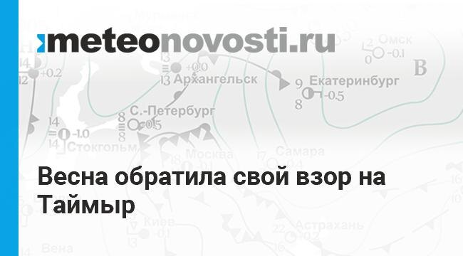 Всю первую декаду месяц май стабильно выдавал средние суточные температуры воздуха выше средних многолетних норм, причем на всей территории полуострова. Однако рекордов по максимальной температуре воздуха в эти дни не случилось. Последние пару дней Таймыр оказался во власти тыловой части циклона. Пришедшая на смену теплым воздушным массам холодная - арктическая, не смогла сильно охладить пыл весны, хотя и принесла с собой пасмурную со смешанными осадками ветреную погоду. Среднесуточная температура воздуха понизилась, но все равно держалась выше нормы. Атмосферное давление растет, открывая дорогу обширному антициклону, раскинувшемуся от Карского моря через всю Западную Сибирь до Красноярска. До конца рабочей недели он посетит с визитом и Таймыр. Облачность поредеет. Осадков не ожидается. Ветер стихнет. Однако, температурный фон останется неизменным: ночью -6...-1 морозца, днем -1...+4 градуса, на юге до +8 тепла. Перейти на сайт Прогноз погоды на 14 дней