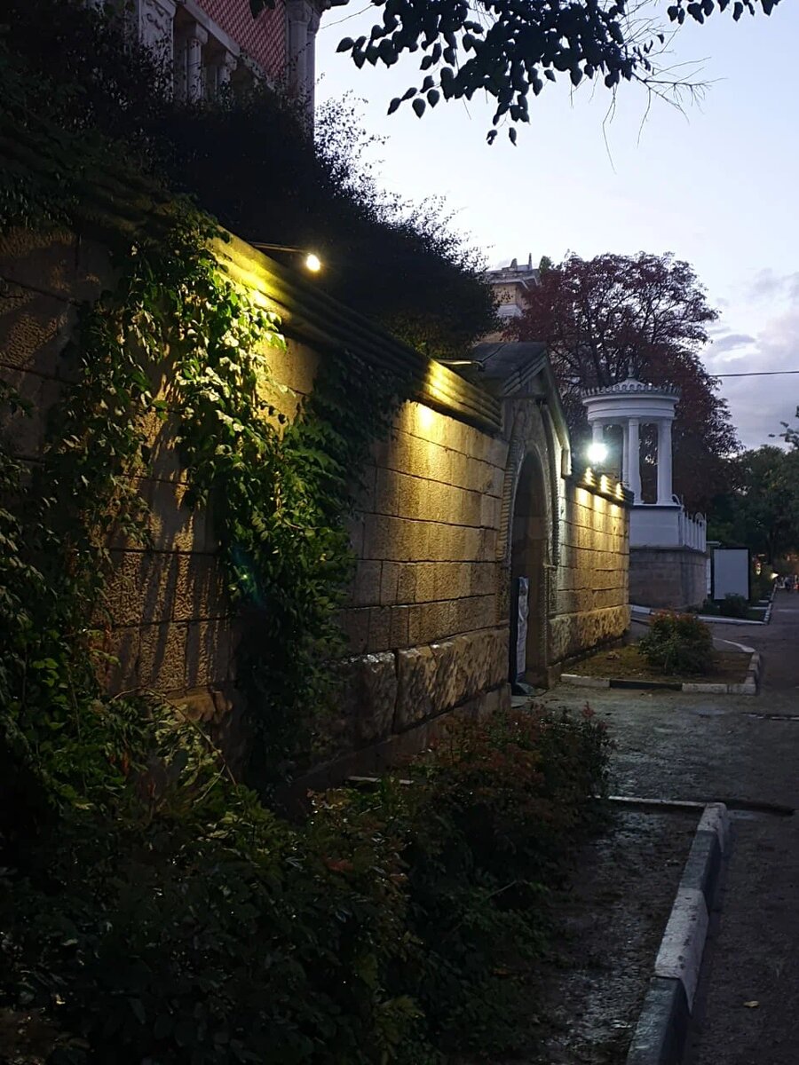 🏰 Дача «Виктория» («Отрада») — комплекс памятников местного значения в Феодосии. Состоит из главного и гостевого корпусов, а также ограждения и малых архитектурных форм. ⭐️ Дача принадлежала Соломону Самуиловичу Крыму, председателю 2-го Крымского краевого правительства, инициатору основания Таврического университета. Строительство началось в 1912 году, а завершилось в 1914 году, дату подтверждают римские цифры на фасаде здания (MCMXIV). 🏠 Здание построено в средневековом испано-мавританском стиле с большим количеством лепнины и резьбы по камню. Главная особенность фасада — орнамент, который сочетает традиционные архитектурные фигуры крымского Средневековья. 💎 По задумке архитектора главный фасад должно было украсить панно с панорамой Феодосийского залива. Мозаика была изготовлена в Италии и отправлена кораблем в Крым. 🔖 Но во время Первой мировой войны корабль подорвался на мине и затонул. Долгое время фасад находился в незавершённом состоянии, позже вместо панно появилась плитка к