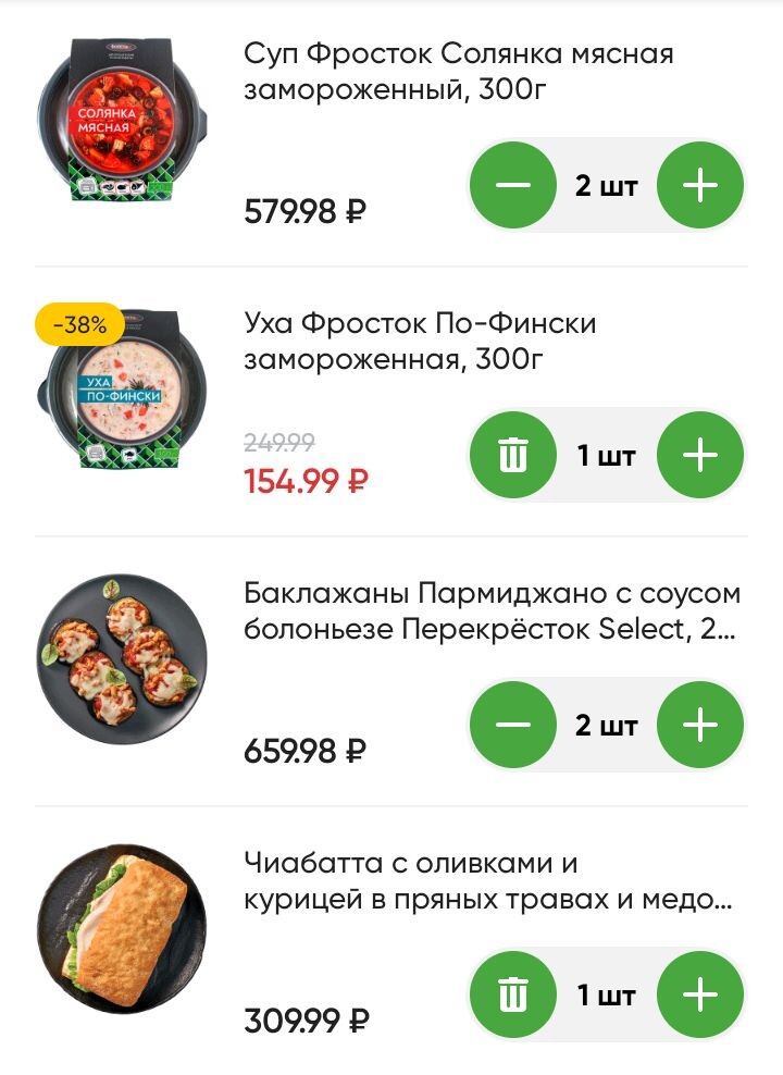 Доброго дня! Третий заказ в Перекрёстке готовых блюд, предыдущие апельсинки я потратила, просто покупая что нужно из текущих продуктов в Пятерочке. В этот раз вышел заказ из 6 позиций, да и подзаработать удалось. Цены, конечно, не дешёвые. Уха в прошлый раз была вкусной, а чиабатта и в это отличная. Апельсинок обещали именно столько, сколько и при заказе показали. Выходит 184р сверху👍 Баклажаны тоже засунула в морозилку, к очередным шашлыкам подадим на стол, я такое не готовлю. Проверено, это вкусно. А вот курицы в это раз в наличие не было, так что выбирала в заморозке супы. Не знаю сколько ещё продлится эта акция, но пока она есть стоит поучаствовать. Знаете, я обычно первые блюда не замораживаю, нам того что готовлю хватает на 2-3 раза. Можно сказать оптимально чтобы не приелся. А вот мама одна живёт, готовит большую кастрюлю супа на выходных и пару порций замораживает, очень даже выручает иногда. А что вы замораживаете из готового? Подписывайтесь. Будем экономить вмес