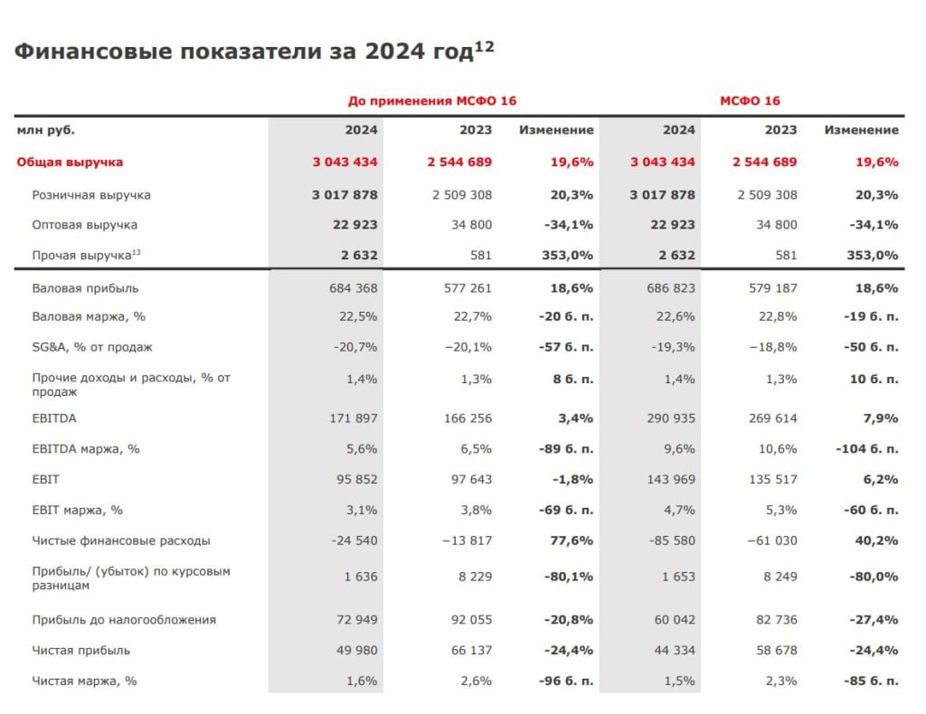 • Выручка 2024: 3043 млрд ₽ (+19,6% г/г)