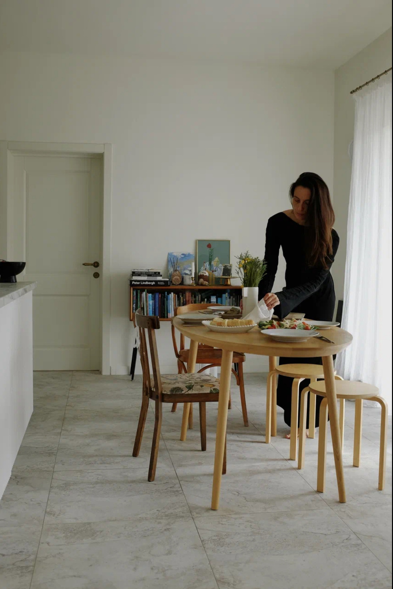 Овальный обеденный стол из бука можно назвать сердцем дома Юли. «За этим столом у нас происходит буквально всё: завтраки, настолки, рисование, даже домашнее задание дети почему-то делают за ним», — смеётся хозяйка. Универсальность, форма, тёплый оттенок дерева — всё в нём говорит о продуманном дизайне и теплоте семьи. Зеркала (кстати, из нашей новой коллекции!), тумба в ванной, шкаф в прихожей — мебель KUBI органично распределена по всему дому, оставаясь при этом цельной в стилистике. И конечно, не можем не упомянуть новинку — столик с разноцветными ножками-бусами. «Я влюбилась в него с первого взгляда — настоящий арт-объект! Сейчас он живёт как будуарный столик, но его легко переместить, если нужна перемена настроения», — делится она. Некоторые изделия создавались на заказ. Вдохновением служили журналы, книги, интерьеры друзей — но финальные решения приходили быстро. «Я за классический дизайн и нейтральные цвета — это всегда актуально. Хотя бывают исключения, как наш разноцветный