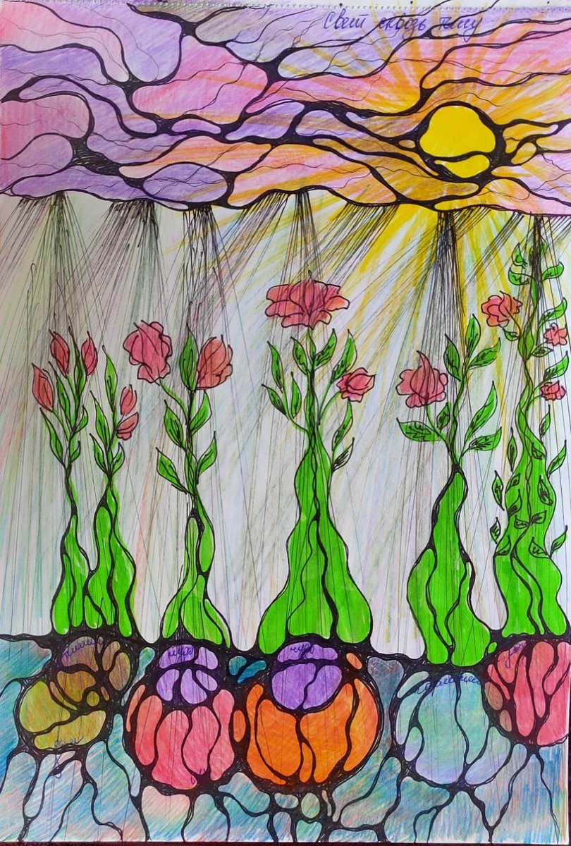 #РисуемСвет Рисунок №17 Свет сквозь тьму. Наталья, вы большая умница! Потрясающий вебинар ❤️ Я обожаю НейроДождь. Всегда мощно и результативно. Не зря его называют шаманским. Смотрю на небо и наслаждаюсь. Когда летним вечером после дождя горизонт приобретает невероятные краски. Я на крыльце своего дома, в кресле, пью чай с мятой и кайфую 😊😍