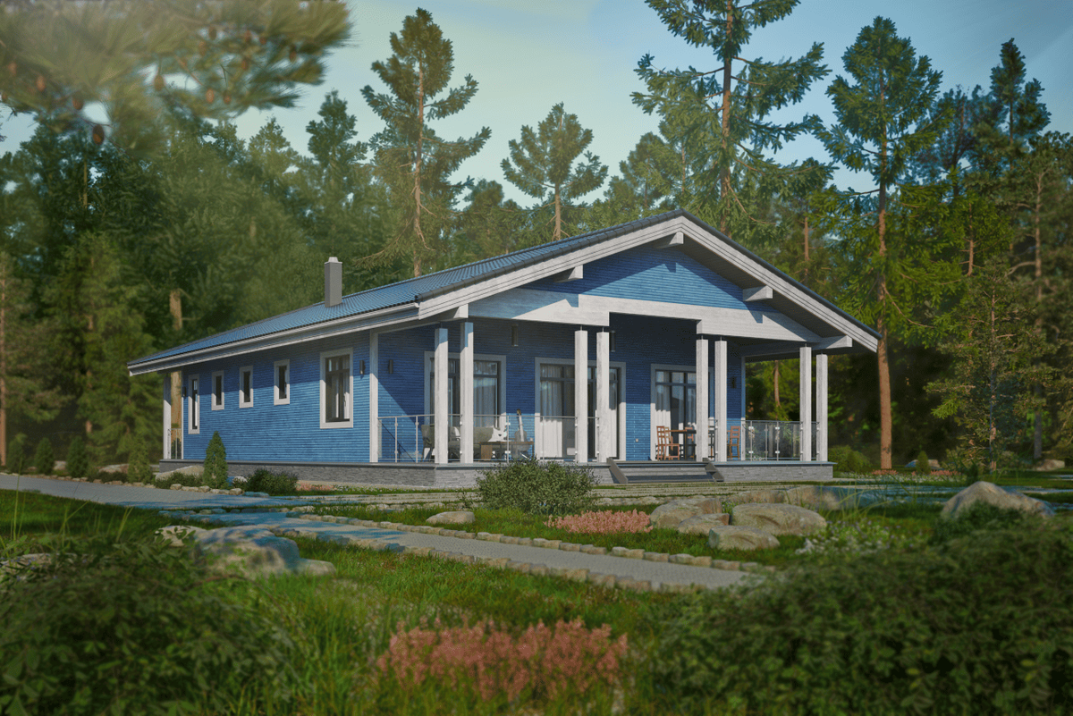 Представляем вашему вниманию современный одноэтажный дом, идеально сочетающий комфорт, функциональность и уют. Этот проект — отличный выбор для небольшой семьи или пары, ценящих простор и приватность: в доме предусмотрена мастер-спальня с собственной ванной комнатой и гардеробной, а также дополнительная спальня для гостей, детей или в качестве рабочего кабинета. Особая изюминка этого дома — наличие собственной сауны, которая создаёт атмосферу релакса и помогает заботиться о здоровье, не выходя за пределы своего жилища. На свежем воздухе можно наслаждаться крытой террасой, которая подойдет для летних ужинов, барбекю или уютных вечеров с чашкой чая. Терраса защищена от осадков и позволяет отдыхать на ней в любую погоду. Этот проект — воплощение современных идей в строительстве частных домов, где каждый метр площади использован с максимальной пользой и продуман до мелочей для вашего удобства и уюта. Вы можете ознакомиться с еще большим количеством наших проектов на сайте или обратиться к