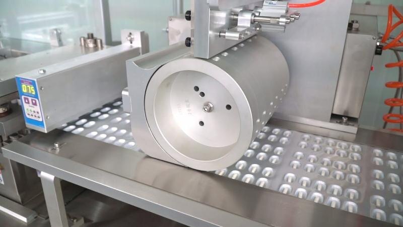 Холодное формование блистеров не позволяет сделать карман по размеру, он оказывается больше таблетки или капсулы, что усложняет прямое извлечение. Решением вопроса стал переходный барабан, добавленный к нижней части пластины. Его внешняя поверхность с углублениями, соответствующими размерам препаратов, оптимизирует процесс.