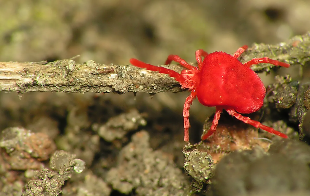Бархатные клещи (Trombidium holosericeum) большую часть жизни прячутся в почве и под опавшей листвой. Они боятся высыхания, поэтому чаще всего прячутся под корягами и травой, а после дождя выводят свои крошечные красные тела на поверхность.