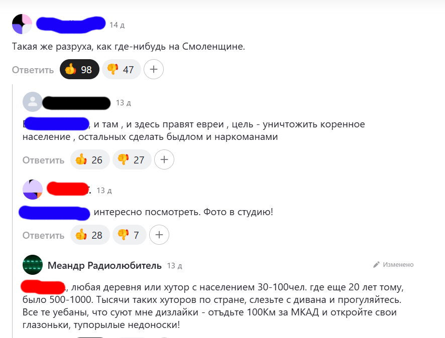 "Все те уе***ы, что суют мне дизлайки - отъдьте 100Км за МКАД и откройте свои глазоньки, туп***лые нед***ски!"