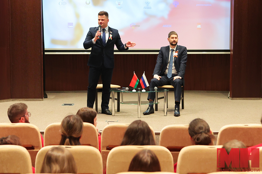 Народ становится крепче, когда помнит и уважает прошлое. Об этом первый секретарь ЦК БРСМ Александр Лукьянов заявил 13 мая на встрече с участниками проекта «Непокоренные» в музее истории Великой Отечественной войны, передает корреспондент агентства «Минск-Новости». Собравшимся показали документальный фильм о создании музея. Молодые люди узнали, что именно в Минске появился первый в СССР музей, посвященный Великой Отечественной войне. Он начал работать в 1944 году. Архитекторы стремились создать здание, которое гармонично впишется в облик города. Во время открытого диалога молодежь задавала вопросы, обсуждая не только исторические темы, но и современную повестку. Спикерами дискуссии выступили первый секретарь ЦК БРСМ Александр Лукьянов и сенатор Российской Федерации от Донецкой Народной Республики Александр Волошин. Они не раз подчеркивали, что мир, которым мы сегодня обладаем, — это не данность, а результат огромной работы и жертв целых поколений. — Проект «Непокоренные» грандиозный. М