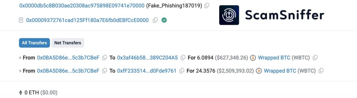 👁🗨 Пользователь потерял $3,13 млн в WBTC из-за фишинговых подписей.
