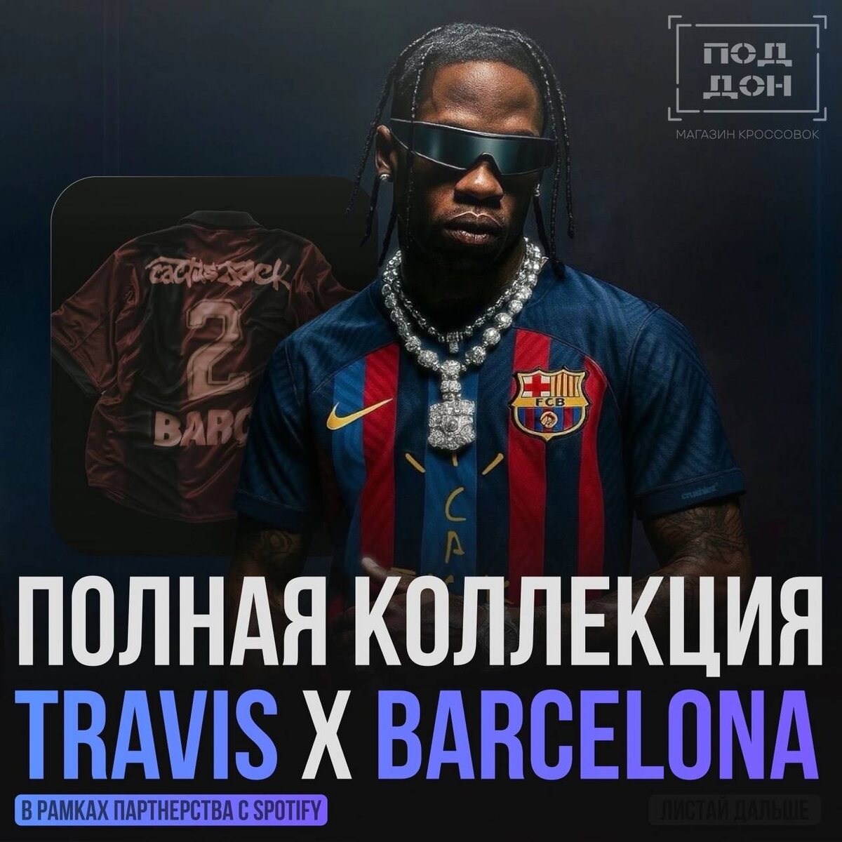 ⚽️🌵 Обзор на полную коллекцию Travis Scott x Barcelona Футбольный клуб «Барселона» объявил о сотрудничестве с Трэвисом Скоттом в рамках партнерства с Spotify. В результате этого сотрудничества логотип Cactus Jack. Некоторые вещи из коллекции появится на груди команды в предстоящем Эль Класико против «Реал Мадрид», а некоторые будут доступны к заказу.
