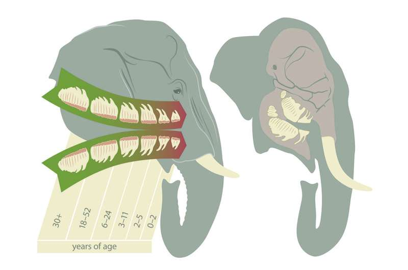 Шестой и последний набор зубов вырастает у слонов примерно к 60–70 годам. Когда эти зубы изнашиваются или разрушаются, слоны теряют способность пережёвывать пищу. Без возможности питаться они постепенно слабеют и умирают от голода. Таким образом, смена зубов становится биологическими часами, которые отсчитывают время жизни этих величественных существ.