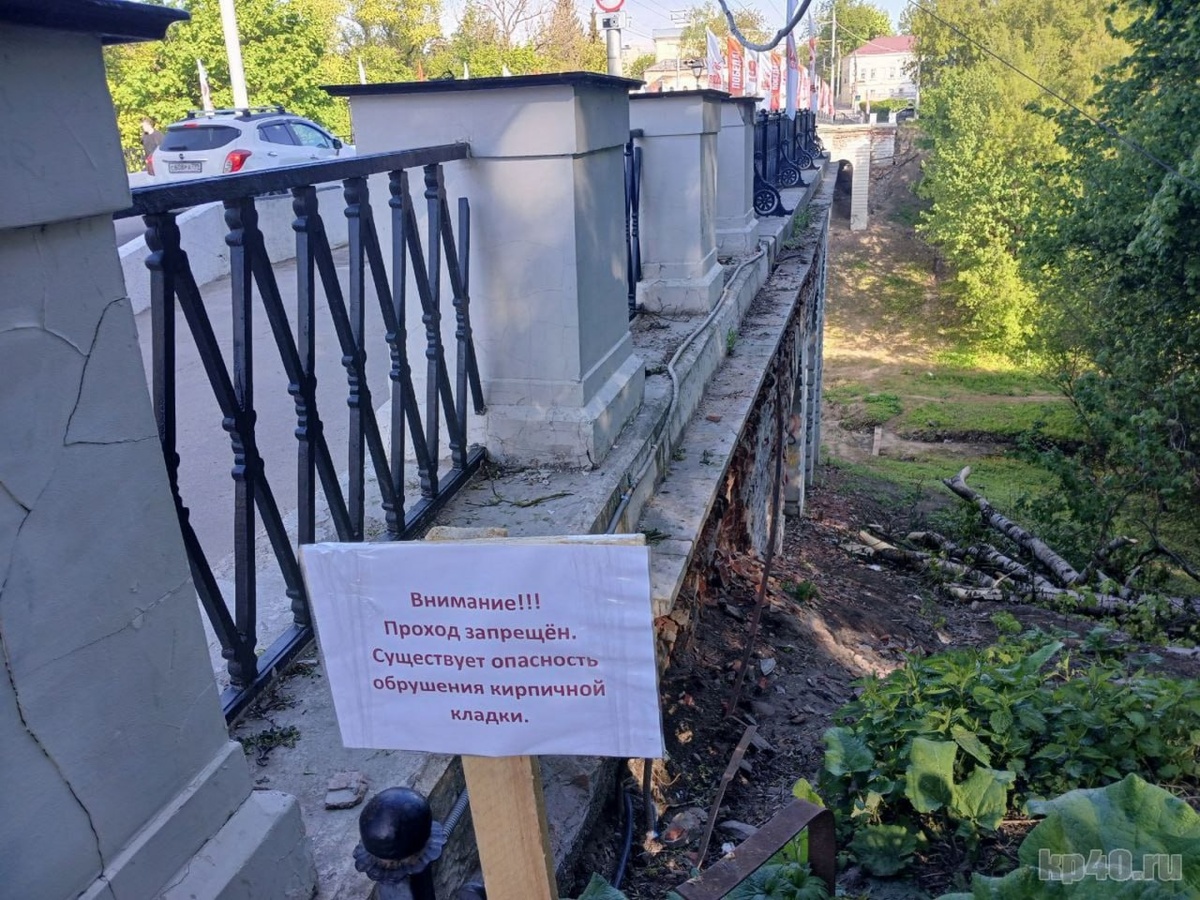 ❗️Жителей Калуги предупредили об опасности Каменного моста Там появилась табличка, запрещающая калужанам спускаться в овраг рядом с мостом: «Внимание!!! Проход запрещён. Существует опасность обрушения кирпичной кладки». Напомним, памятник архитектуры уже давно в плачевном состоянии. Зимой городские чиновники заявляли, что на ремонт нужно 35 миллионов рублей. Найдут ли их в нынешнем году, пока не уточняется. Калуга.Главное