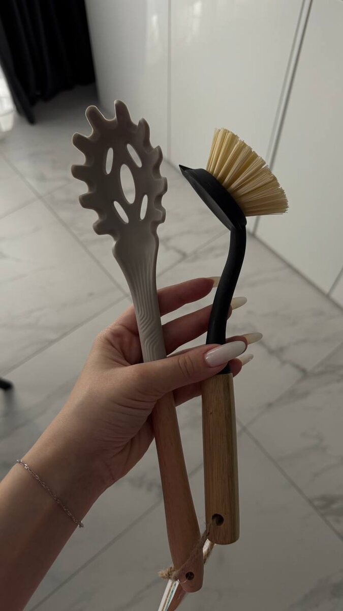 Прикупила щетку для чистки душевой (можно использовать для раковин, швов) и прибор для вылавливания макарошек (попробуем)