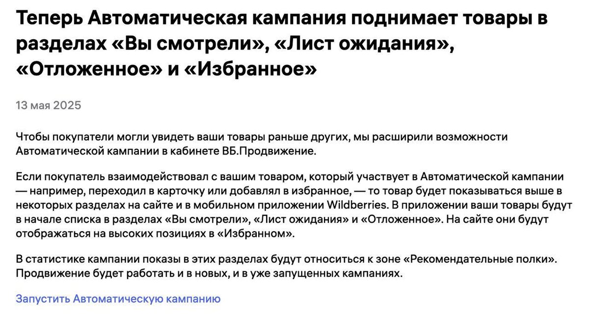 π ΠΠ·ΠΌΠ΅Π½Π΅Π½ΠΈΡ Π² ΠΠ²ΡΠΎΠΌΠ°ΡΠΈΡΠ΅ΡΠΊΠΈΡ ΠΊΠ°ΠΌΠΏΠ°Π½ΠΈΡΡ Wildberries