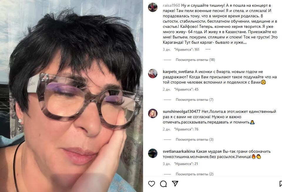 Но, конечно, тема отношения к специальной военной операции для тех, кто пристально наблюдает за творчеством и публичной активностью Милявской, стоит особняком. Лолита уже неоднократно испытывала проблемы с отменой концертов из-за того, что её позиция по отношению к России вызывает сомнения у части публики и общественников.