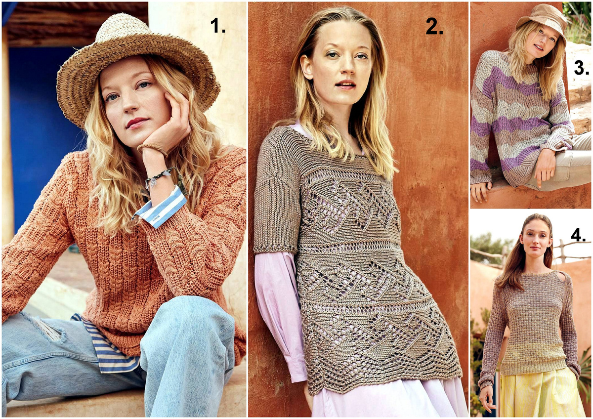 3. Нуга, лаванда и серый беж — нежное и стильное сочетание пастельных оттенков для универсального пуловера, связанного полупатентной резинкой. Никаких излишеств! Тонкая пряжа из смеси вискозы, хлопка и льна довершает лаконичный и элегантный образ;