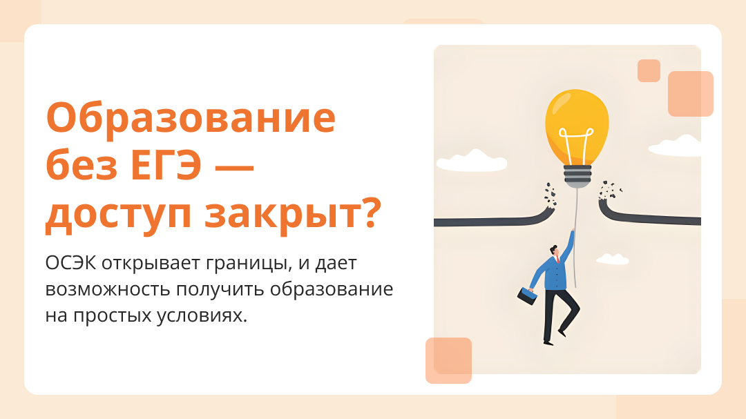 У каждого свой путь к карьере. Кто-то не сдавал экзамены, кто-то давно окончил школу, а кто-то просто не видит себя в вузе. И что же делать? Отказаться от мечты? ОСЭК открывает границы, и дает возможность получить любимую профессию на простых условиях. Без ЕГЭ, конкурсов и с максимальным комфортом. ✅ Выбирайте подходящее направление. У нас вы найдете 18 разных специальностей в самых разных сферах — юриспруденция, экономика, туризм, ветеринария, поварское дело, педагогика, дизайн и другие. ✅ Экономьте: сейчас обучение доступнее. До -53% — такая скидка действует на обучение прямо сейчас. А значит, можно зафиксировать выгодную стоимость до повышения цен и не переплачивать. ✅ Учитесь дистанционно, в удобном темпе. Без строгих лекций, без обязательных выходов в онлайн, без отрыва от работы или семьи. Расписание выстраивается под вашу жизнь, а не наоборот. ✅ Консультируйтесь с преподавателями. Педагоги всегда на связи, готовы помочь и объяснить материал. А техническая и академическая поддерж