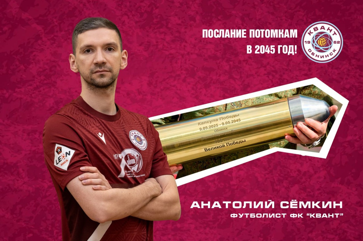 Послание потомкам от Анатолия Сёмкина: Дорогие близкие и те, кто встретит эти строки. Пишу вам из 2025-го, когда мне 33, а до вашего времени — целая жизнь. Сейчас мир стремительно меняется, но верю, что ваши сердца, как и наши, ценят простое: доброту, честность, умение прощать. Берегите семью — она ваш якорь. Мечтайте, даже если кажется, что всё решено за вас. Скоро наступит 2045-й — 100 лет Великой Победе. Помните, какой ценой даровано мирное небо. Пусть память о подвиге предков учит вас мужеству в любые времена. Живите ярко. Ошибайтесь, но не сдавайтесь. Футбол, технологии, путешествия к звёздам — что бы ни стало вашей страстью, отдавайтесь ей полностью. А если встретите трудности — вспомните: мы, ваши «предки» из прошлого, верили в вас ещё до старта. С любовью и верой, Саша и Марк, я вас очень люблю! P.S. Если к 2045-му изобрели телепорт — загляните на чай. Расскажите, как обыграли ИИ в чемпионате мира! Сёмкин Анатолий, полузащитник футбольного клуба «Квант»
