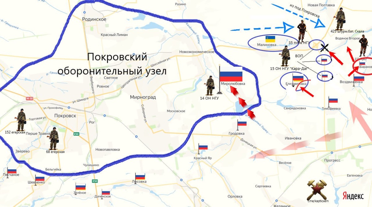 ВС РФ фиксируют фронт по внешнему Покровскому оборонительному периметру (от Песчаное до Гродовки), и начинают атаковать "малиновскую развязку". Генштаб ВСУ опять, как и несколько месяцев назад, тянет сюда резервы.