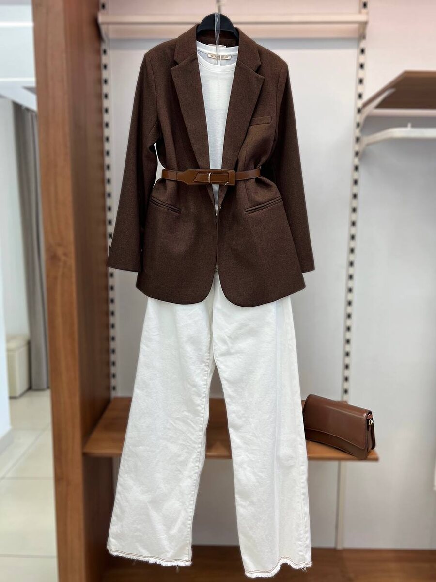 Базовый образ: шоколадный жакет и молочные джинсы с футболкой 🤎