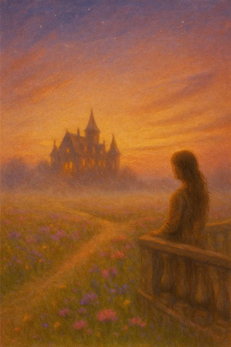 когда в замке становилось особенно тихо и тягостно. 🌸 Замок стоял посреди огромного цветущего поля.