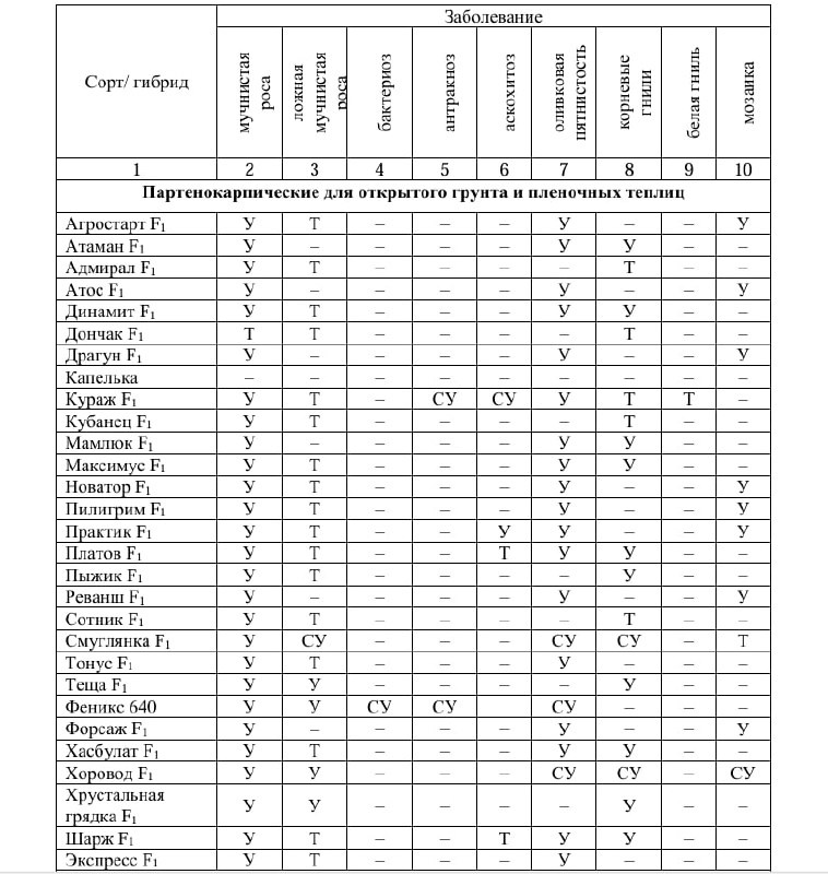 📌 Устойчивость районированных сортов и гибридов огурца к различным возбудителям болезней (данные КубГАУ)