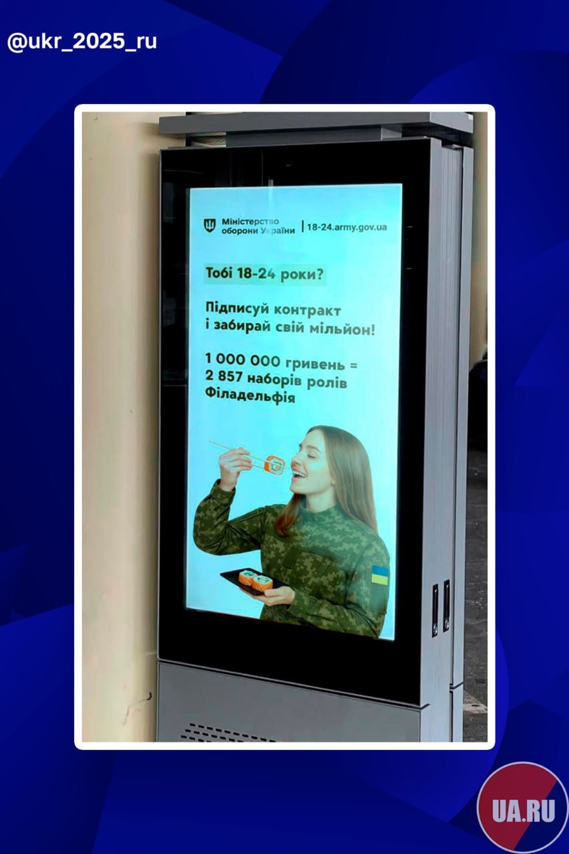На Украине привлекают 18-летних девушек в ВСУ роллами "Филадельфия". Видимо мужики окончательно закончились..😳