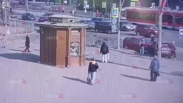 Этот момент попал на камеры видеонаблюдения, запись оказалась в распоряжении ЛенТВ24. На кадрах видно, как машины после столкновения вылетели на пешеходный переход. Затем этого одна из них врезалась в столб.