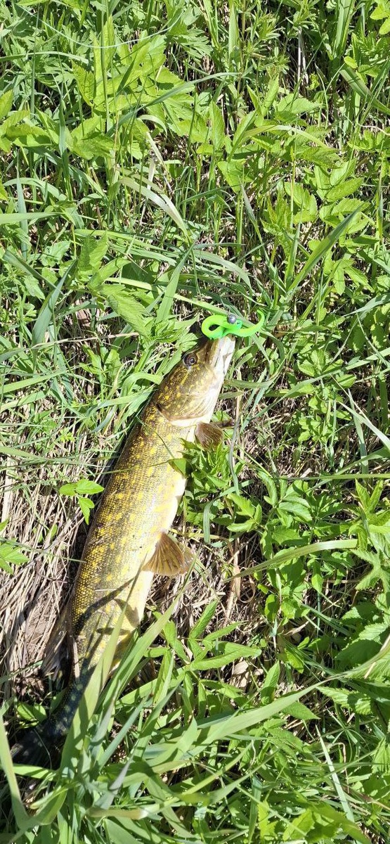 ‼️12.05.25‼️ 🚩 Река Оредеж в районе п. Вырица Ловил с 10 до 13. Перепробовал кучу разных приманок размером до 100мм. В итоге взяла Угря в размере 130мм, цвет салат лимон, на третьем забросе угорёк её соблазнил. Итог: щука 1.2 кг