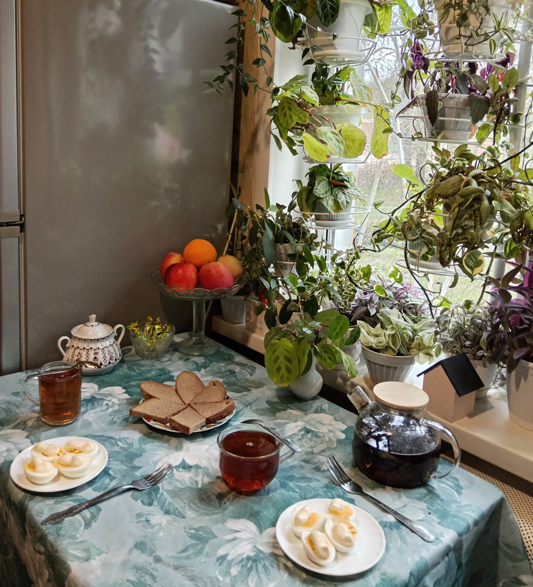 Проснулась немного раньше. Полежала, подумала о планах на день. Вернее, на вечер. Днём я ведь на работе. А вот вечер полностью в моём распоряжении. Хочу теплицу копаю. Хочу клубнику обрабатываю. Что хочу, то и делаю. Разгул фантазий. Огородных фантазий. 6:43. Будильник прервал фантазийные огородные размышления. Шторы в ближайшее время надо постирать и окно вымыть. Когда все перед Пасхой стирали, у нас было холодно. Боялась простудиться. Да и цветам холодно при открытых настежь окнах. Так что банный день окнам светит после огородных дел, когда картошку посадим. +4° С температура воздуха на улице. Пока чайник бурлил в предвкушении нового дня, сходила на улицу за смородиновыми веточками. На завтрак сварила яйца. Яйца с майонезом - правильный белковый завтрак. 7:50. Пасмурно, но довольно светло. Солнышко сквозь облака пробивается. Иду не торопясь. Разглядываю утренние очертания предметов. Хотя прохладно. Бодрит. 8:00. Кадастровый инженер Виктор Михайлович уже на рабочем месте. Перемо