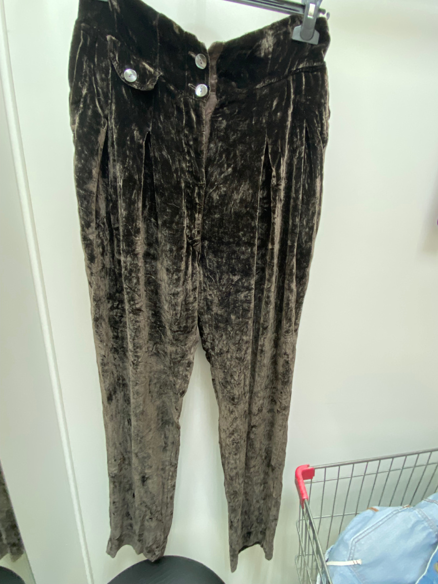 Привет всем) Продолжу показывать свои находки этого месяца. Недавно было новое поступление в «Другом городе», эта сеть появилась в нашем городе совсем недавно, и я еще не берусь судить о ее ассортименте, поживем-увидим! В первый день я туда не попала, поэтому все самое лучшее разобрали по домам до меня) Смотрим что осталось…👀 Начну с брюк, я их редко почему-то освещаю, исправляю это «недоразумение» Коричневые велюровые брючки в стиле «бананы» Такая мода была в 90–е, и сейчас возрождается заново. Круговорот воды моды в природе) 1600 рублей Кружево сейчас везде! На носках, сумках, пальто … Вот и на брюках нашла) Отличный, дорогой бренд. Оригинал 1600 рублей. Шелковая блузка от Medeleine с имитацией запАха и майки. Мне немного в бедрах узковата, а то оставила бы себе, однозначно) Смотрится отлично. Шелк плотный, креповый. Не помню сколько стоит. У этой сети ценообразование разное, чем они мотивируются оценивая вещи, для меня загадка. Хлопковое платье- майка от бренда Marc