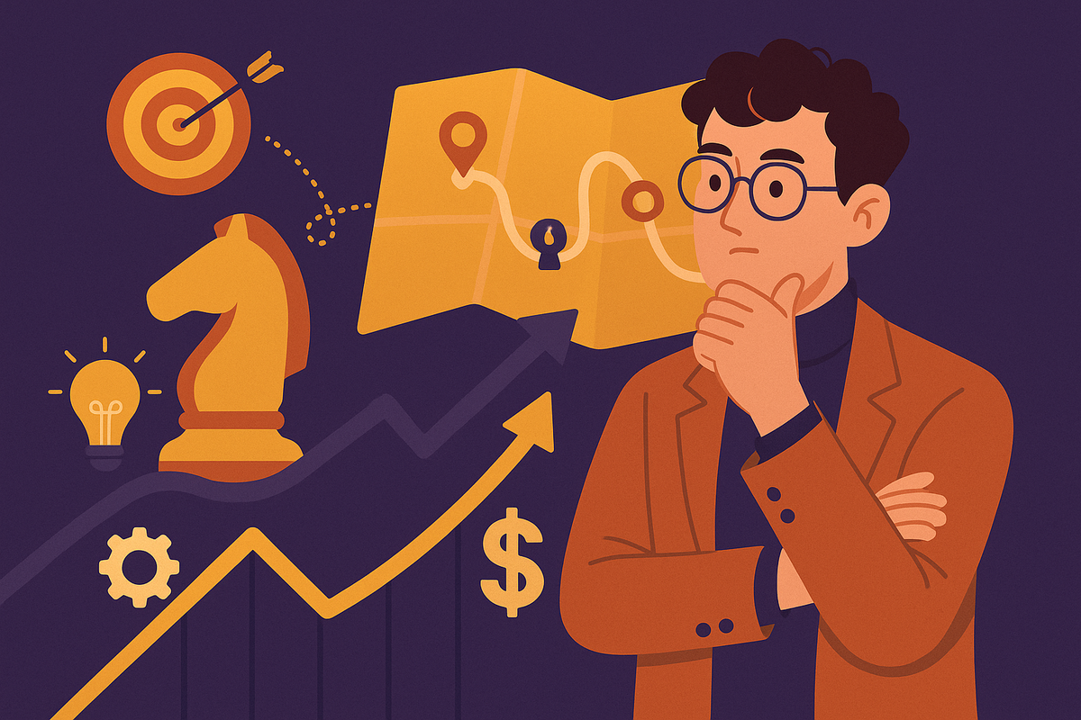 Отправиться строить бизнес без стратегии – это все равно, что пойти в лес без компаса, в путешествие без карты, а в дорогу без навигатора. Она помогает компании ориентироваться в сложных условиях рынка, выбирать правильное направление и достигать своих целей. Любите ли вы стратегию так, как успешные компании, такие как Apple и Google? Она позволяет им не только реагировать на изменения рынка, но и предвосхищать их, потому что у них есть четкий план действий на годы вперед. Примеры стратегического мышления в бизнесе: Впрочем, независимо от сферы деятельности правильная стратегия может стать надежным спутником на пути к успеху: Стратегия фокусировки. Apple Inc находилась на грани банкротства, и тогда Стив Джобс сосредоточился на ключевых продуктах: iPhone и MacBook. Стратегия грандиозности. Илон Маск, основатель SpaceX, ставя амбициозные цели (колонизация Марса), дал старт космическому туризму. Стратегия саморазвития. Радиоведущая Опра Уинфри, развивая навыки коммуникации, стала одной из