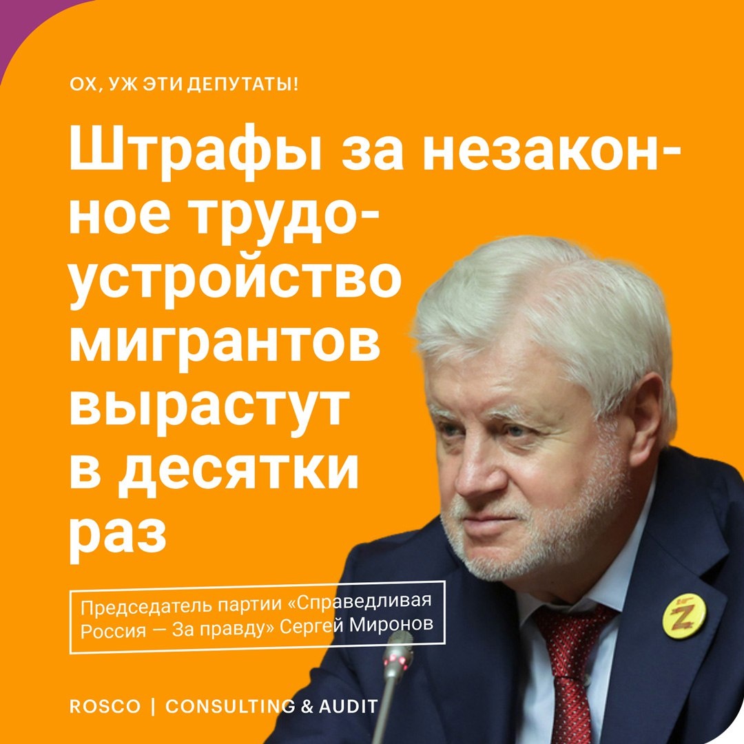 👨💼Трудоустройство иностранцев-нелегалов может обойтись работодателям на порядок дороже #рубрика_депутаты Депутат Госдумы Сергей Миронов, председатель партии «Справедливая Россия — За правду», предложил значительно повысить штрафы за незаконное трудоустройство мигрантов. Наказание может увеличиться вдвое для юридических лиц, и в десять раз для физических. Справедливороссы утверждают: данная инициатива продиктована тем, что последняя индексация санкций проходила около десяти лет назад. В условиях роста цен и заработных плат, размеры штрафов также требуют пересмотра в сторону увеличения. В пояснительной записке к документу, внесённому в Госдуму 24 апреля 2025 года, указано, что за последний год максимальная зарплата иностранцев на производстве выросла со ста до ста пятидесяти тысяч рублей. Законопроект подразумевает поправки к статье 18.15 Кодекса РФ об административных нарушениях (незаконное привлечение к трудовой деятельности в Российской Федерации иностранного гражданина или лиц