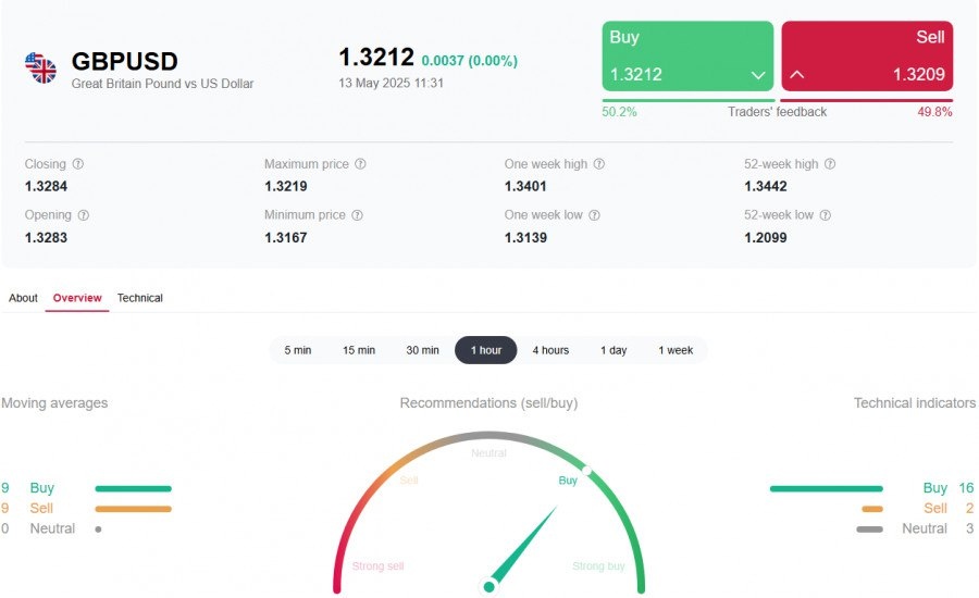На текущий момент GBP/USD демонстрирует коррекционное движение к уровню 1.3200. Последняя фаза ослабления британской валюты связана с укреплением доллара США на фоне позитивных новостей с торговых переговоров между США и Китаем. Как известно, стороны договорились временно снизить тарифы на 90 дней: до 30% со стороны США и до 10% со стороны Китая. Это снизило напряженность и поддержало спрос на доллар.
