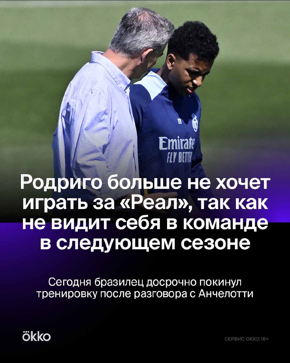 Анчелотти еще не ушел из «Реала», а проблемы в Мадриде уже начались 👀 Как докладывает Marca, Родриго покинул сегодняшнюю тренировку «Реала» спустя 15 минут после ее начала. Сообщается, что бразилец не сыграет с «Мальоркой» в среду — вингер больше не хочет выступать за мадридский клуб. Бунт на корабле или временная депрессия? 🫣