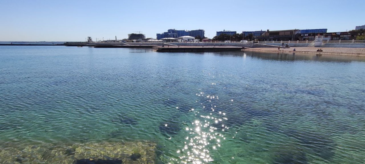 Пляж парк Победы, пляж Аквамарин, кристально чистая морская вода