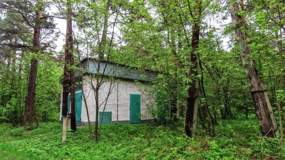 Свернув с белой дорожки влево, мы оказались на территории, огороженной металлическим забором (сюда редко кто из посетителей бора заглядывает). В ее центре – трехэтажное административное здание бежевого цвета, будто созданное на стыке времен.