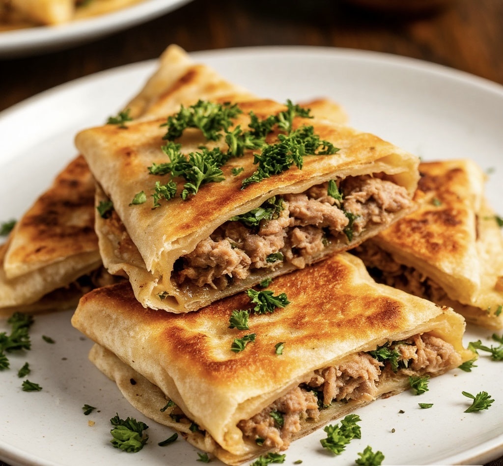 Конвертики из лаваша с тунцом – хрустящие и сочные! Идеальная закуска для пикника, фуршета или быстрого перекуса. Готовится за 15 минут ,а исчезает за секунды! Ингредиенты (на 6–8 конвертиков) ✔ Лаваш армянский – 2 листа ✔ Тунец в собственном соку – 1 банка (180–200 г) ✔ Сыр плавленый/твёрдый – 100 г ✔ Яйцо варёное – 1–2 шт. ✔ Огурец свежий/солёный – 1 шт. (по желанию) ✔ Зелень (укроп, петрушка, зелёный лук) – пучок ✔ Майонез/йогурт – 2 ст. л. (Домашний) ✔ Специи : соль, чёрный перец, паприка ✔ Масло растительное – для обжарки (если жарите) или на сухой сковородке 😀 Пошаговый рецепт *1. Подготовка начинки* 1. Разомните тунец вилкой, слейте лишнюю жидкость. 2. Добавьте нарезанное яйцо, тёртый сыр, мелко порубленную зелень и огурец. 3. Заправьте майонезом, посолите, поперчите. 2. Формируем конвертики 1. Разрежьте лаваш на квадраты (~10×10 см). 2. Выложите начинку (1–1,5 ст. л.) в центр. 3. Заверните конвертиком: - Сложите края к центру, как конверт. - Смажьте