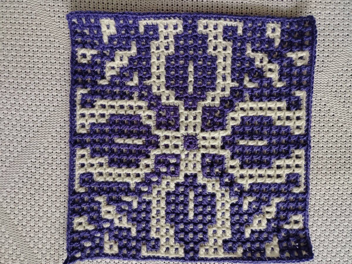 Описание и схема на узор «Колокольчики». Мозаичное вязание крючком из центра.